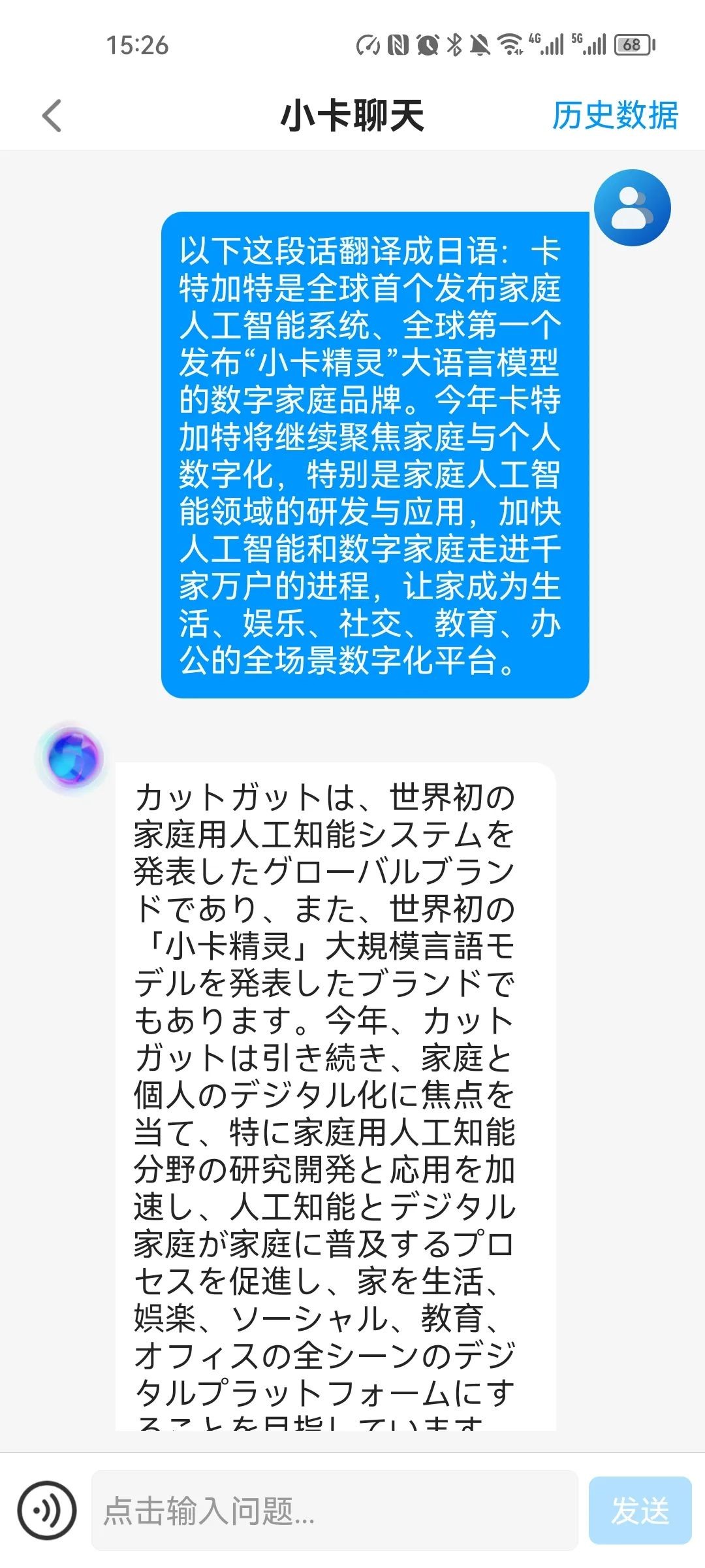 无需繁琐的语言学习和翻译软件,随时随地输入您想要翻译的内容,小卡即刻为您自动翻译。
